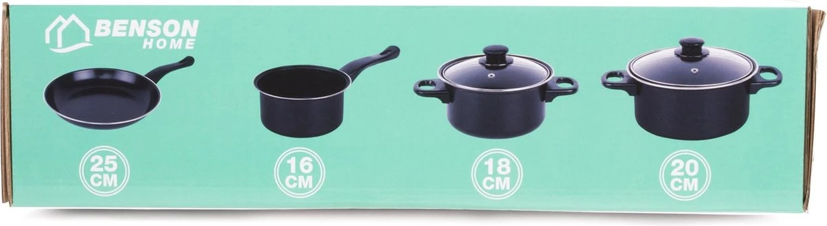 Wil jij een complete pannenset zodat je voor iedere maaltijd de juiste pan op de camping hebt staan? Kies dan voor deze complete pannenset van Benson! De pannen zijn geschikt voor alle warmtebronnen behalve open vuur en inductie. De pannen zijn gemaakt van 0.8 mm carbon staal en zijn voorzien van een volledig PTFE vrije antiaanbaklaag. Doordat de pannen in elkaar gestapeld kunnen worden nemen ze weinig opbergruimte in beslag.