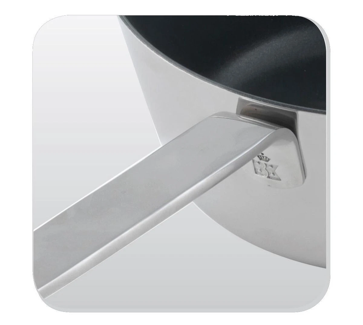 De BK Conical Deluxe pannenserie is voorzien van een 3-ply body. Deze unieke body van drie lagen verdeelt de warmte snel over de gehele pan. Dankzij de afgesloten bovenrand ontsnapt de warmte niet uit de pan. Dit maakt de pannen bijzonder energiezuinig.