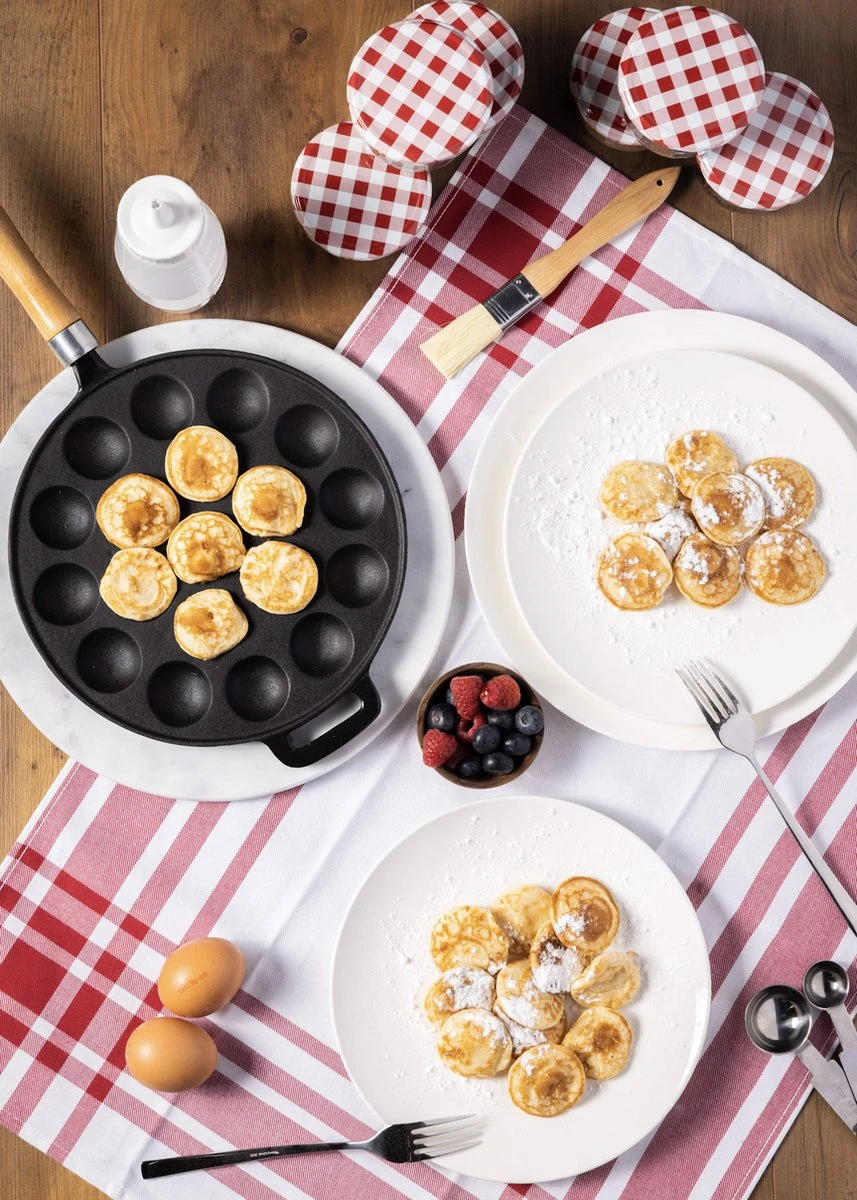 Bak makkelijk en snel poffertjes met de gietijzeren Blackwell Poffertjespan. Door het gietijzer worden de poffertjes snel en geleidelijk warm, wat voor een perfect resultaat zorgt. De poffertjespan is geschikt voor alle warmtebronnen en dient na afloop met de hand schoongemaakt te worden.De pan heeft een diameter van 24 cm en ruimte voor 19 poffertjes. De houten steel wordt er los bijgeleverd. Draai voor gebruik zelf het houten handvat op de pan, hierdoor kan je de pan eenvoudig verplaatsen. Serveer dit weekend de lekkerste poffertjes voor vrienden en familie!