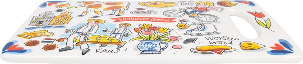 We love Holland! De nieuwe Hollands Glorie lijn van Blond Amsterdam is vormgegeven in frisse rood/wit/blauwe tinten en voorzien van typisch Hollandse illustraties. Een echt Hollands kaasplankje met typische Hollandse tafereeltjes en hapjes.
