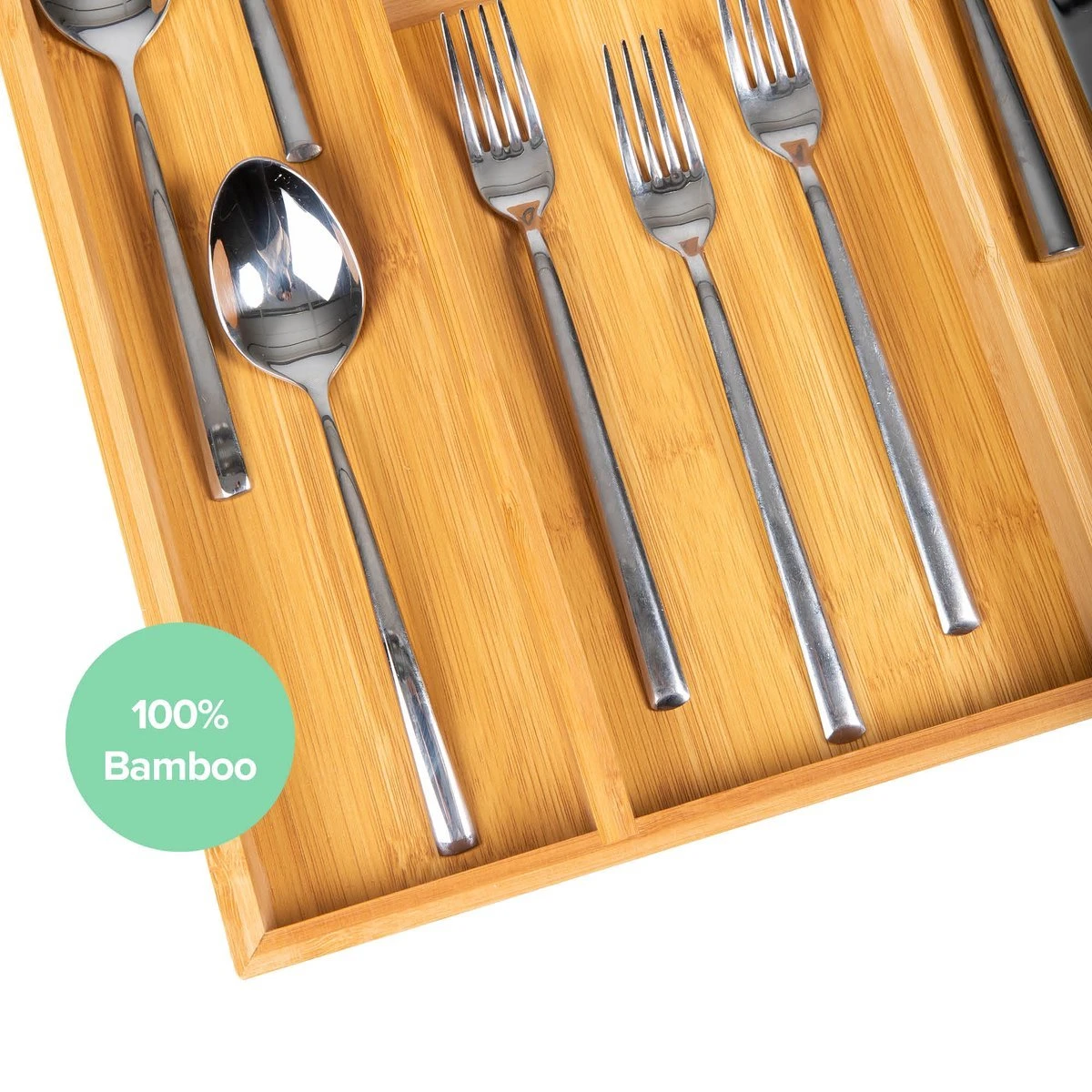 De bestekbak is zeer slijtvast door het zeer sterke bamboe hout en geeft een goede bescherming voor de voorwerpen die in de organizer geplaatst zullen worden. Bij de normale bestekbakken zal ongetwijfeld voorkomen dat de messen door het plastic heen prikken of dat de kwaliteit na enkele weken afneemt. Dit probleem heb je niet met de bamboe bestekbak.