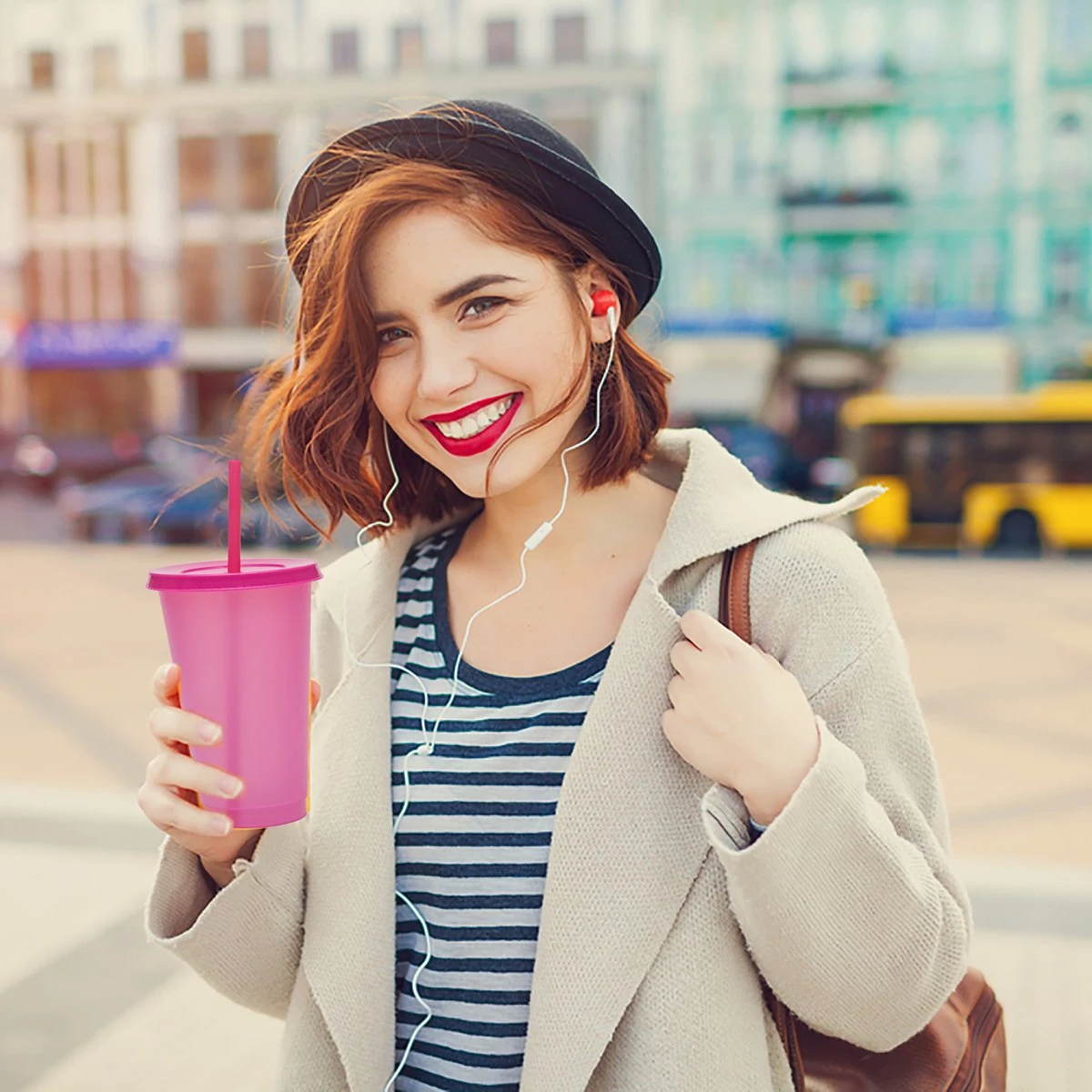 Herbruikbare Bekers Met Rietje En Deksel Van Plastic – Starbucks Design – Drinkbekers Met Rietje – Kleur Veranderende Beker – 5 Pack