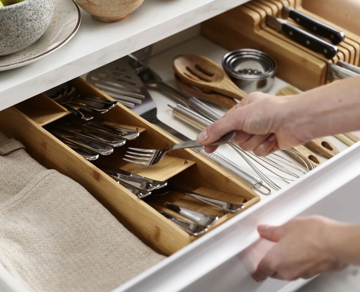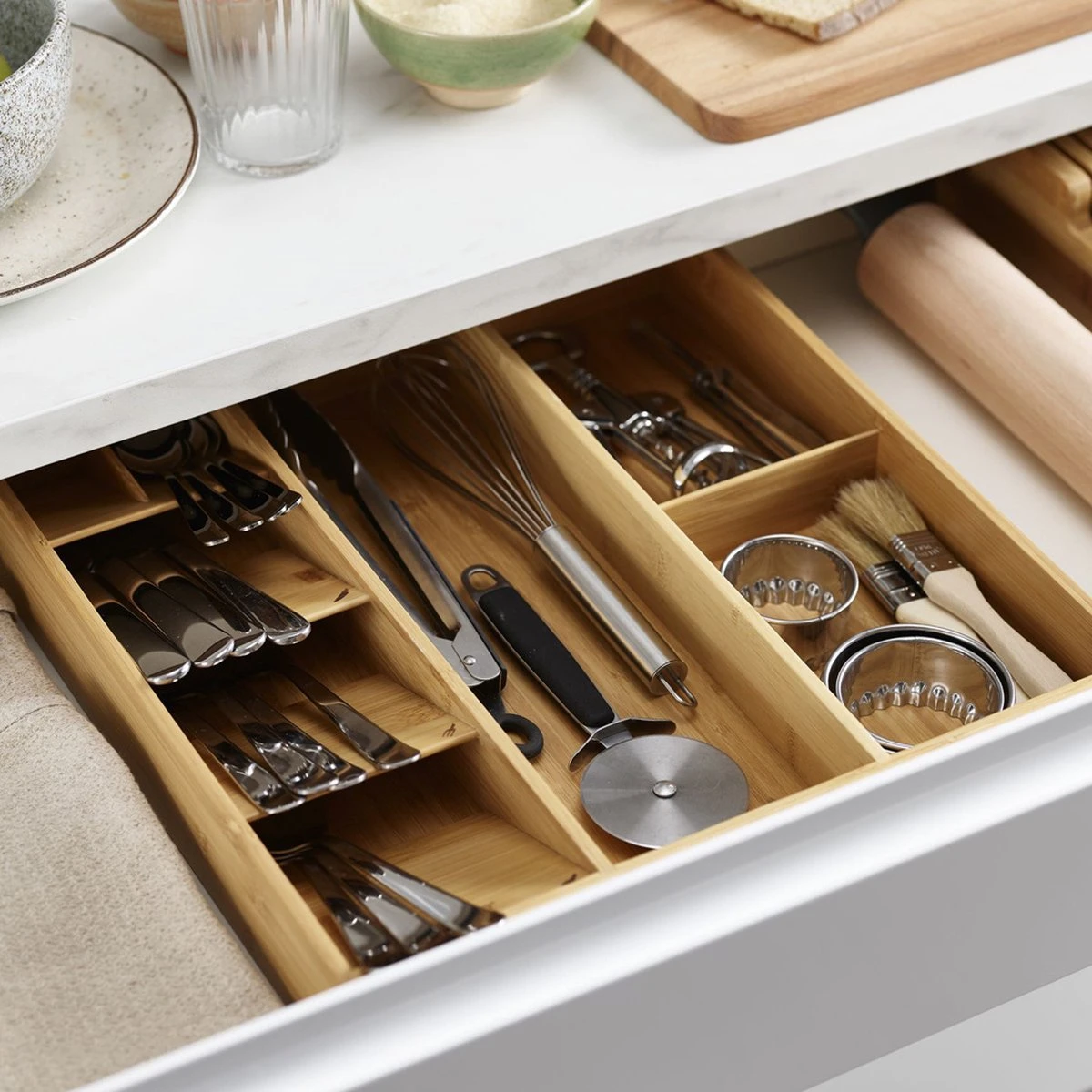 Bamboe spullen geven een warm gevoel aan een ruimte. Ben je geen fan van bamboe, en wil je liever een andere soort bestek organizer? Bij onze keukenlade inrichting categorie vind je verschillende stijlen om uit te kiezen. Neem ook een kijkje bij onze andere producten voor in de keuken.