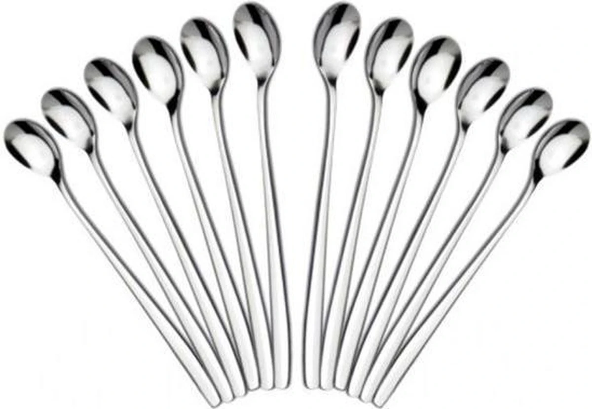 Latte Machiato Lepels – RVS Lange Yoghurt, Dessert Of Koffie Lepeltjes – KELERINO. – Set Van 12 Stuks