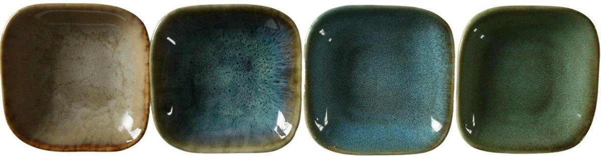 4x Snackschaaltjes/sausschaaltjes aardewerk vierkant 9 cm. 4x Schaaltjes voor o.a. snacks, pinda’s en sausjes in de kleuren blauw, donkerblauw, taupe en groen. Afmeting: ca. 9 x 9 x 2,5 cm. Materiaal: aardewerk/steen. Geschikt voor oven/magnetron: ja. Geschikt voor vaatwasser: ja.