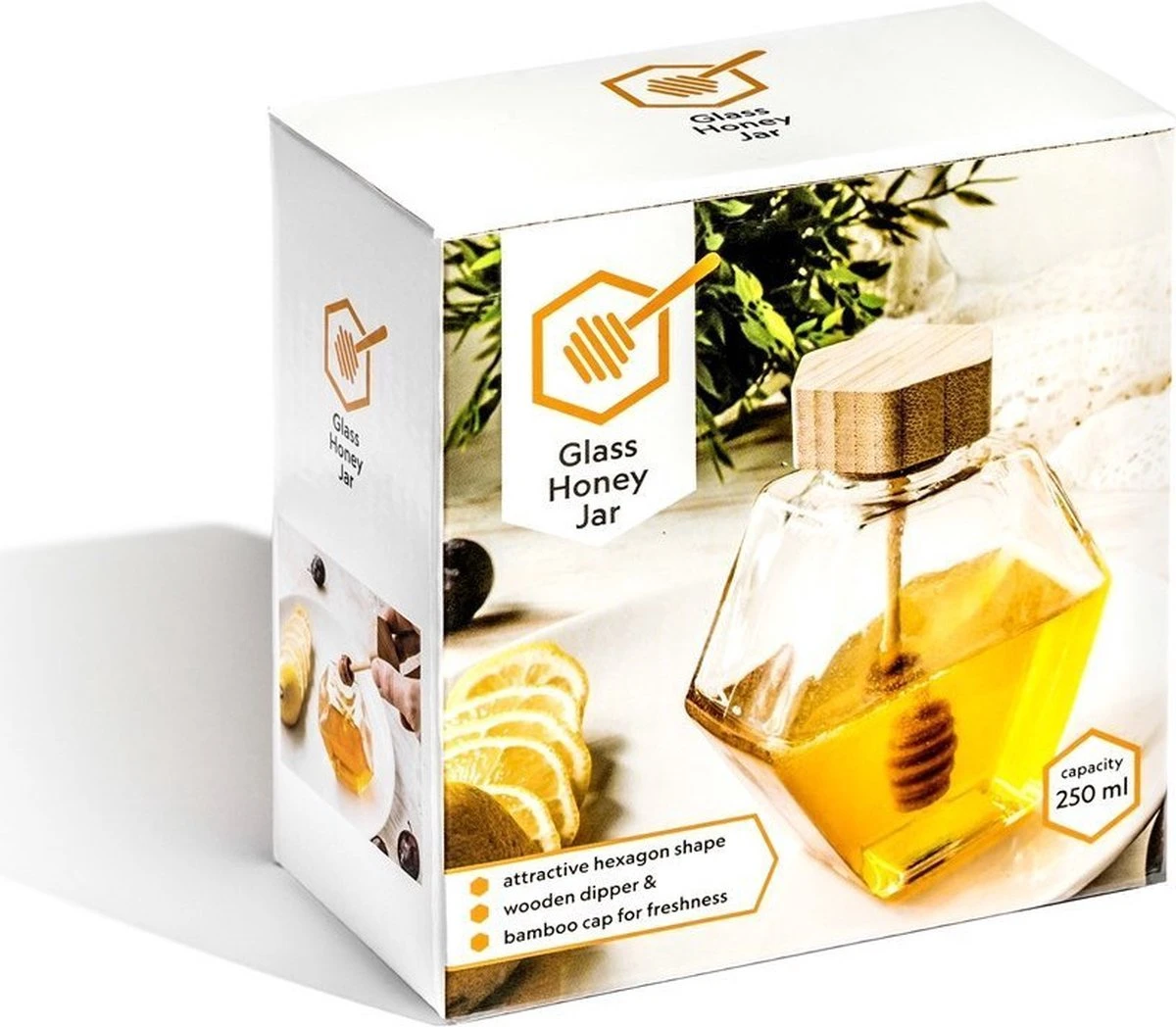 Merkloos Honingpot Met Lepel – Glazen Honingpot – Honingpot – Honing – Honinglepel – Inhoud 250ml – Afmetingen 11 X 9.5 X 5 Cm
