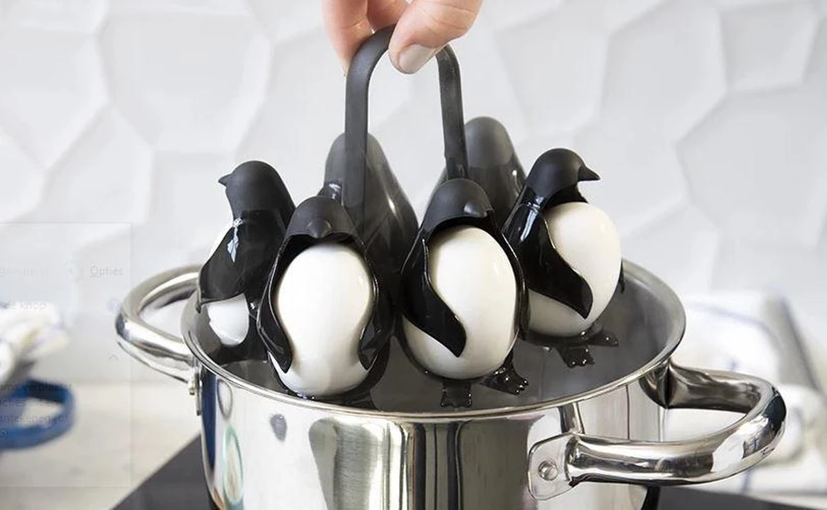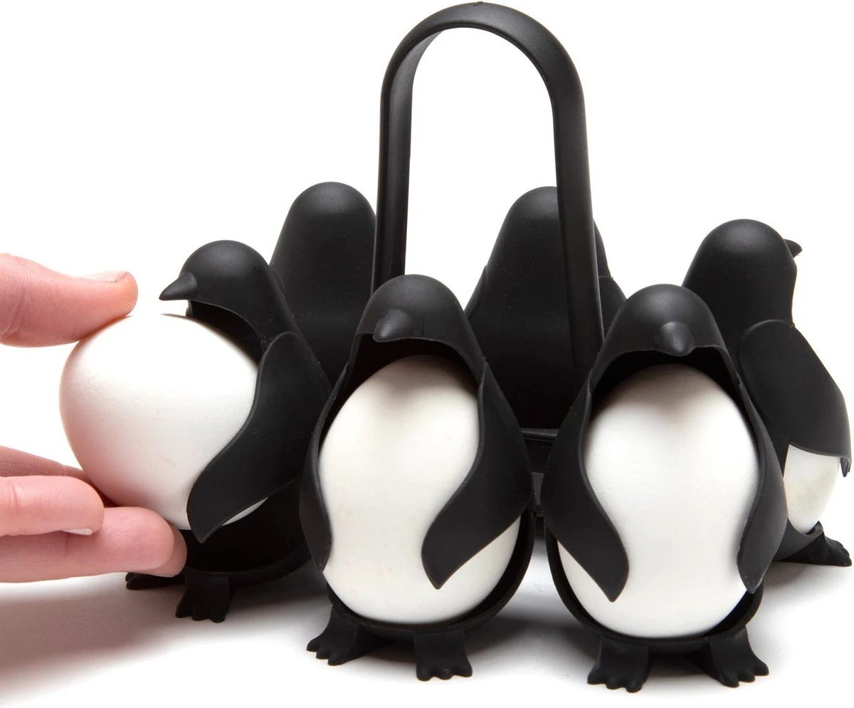 Egguins eierhouder van Peleg Design. Eierhouder in de vorm van een groepje pinguïns. De Egguins cook, store & serve egg holder kan zes eieren tegelijk bewaren. Zet ze in de koelkast, in een pan kokend water en daarna op tafel. De makkelijkste manier om eieren in kokend water te leggen is met deze pinguïn eierhouder. De houder is gemaakt van plastic en heeft een afmeting van 14,7 x 12,1 x 12,6 centimeter.