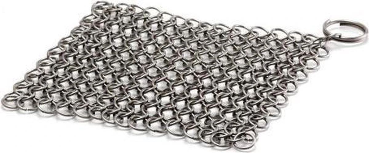 | Verpakkingsinhoud | Handige roestvrijstalen scrubber voor het schoonmaken van gietijzeren of smeedijzeren pannen, zoals Dutch Ovens en Skillets. Verwijdert gemakkelijk aangekoekte resten zonder de pan te beschadigen. Uitwasbaar en dus telkens herbruikbaar. |
