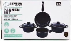 Benson Pannenset 6 Delig – Carbon Staal 0,8 Mm Met Glazen Deksels