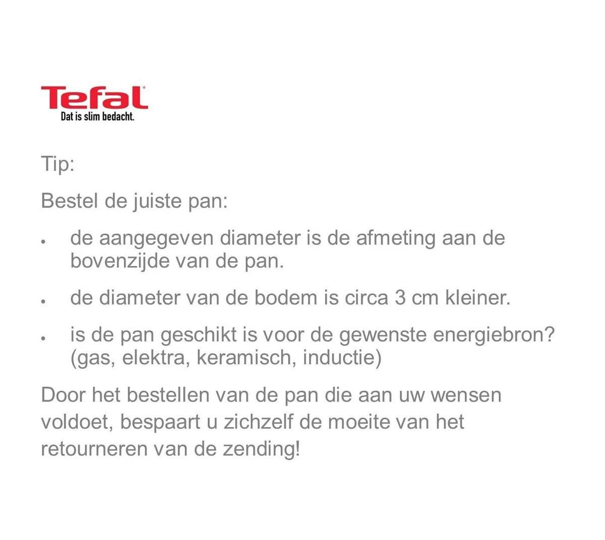 | Geschikt voor type warmtebron | Brander / Elektrisch / Gas / Geschikt voor alle warmtebronnen / Halogeen / Inductie / Keramisch / Oven |