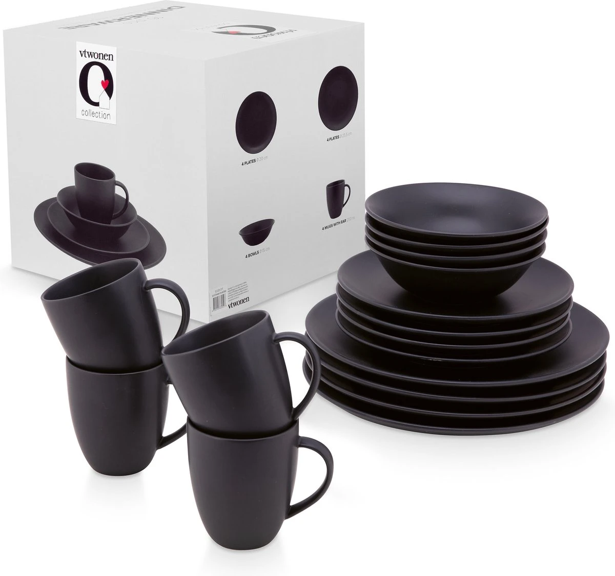 Vtwonen Serviesset – Mat Zwart – Porselein – 16-Delig