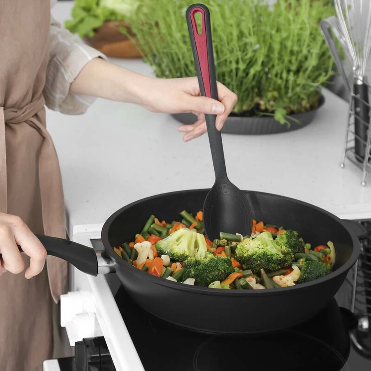 - Ideaal voor gecoate potten en pannen